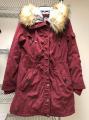 1 MADISON 女式红色连帽大毛领中长款棉衣1件 S