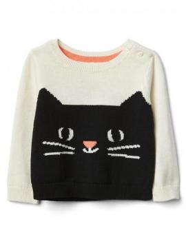 款式描述:盖璞婴儿系列 万圣节猫咪毛衣